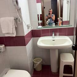 Nach der bewegten Überfahrt und Transfer sind wir um 18:45 im Hotel Lazagara angekommen. Wir haben das Zimmer 304 im 3. Stock. Es ist sehr schön und hat einen niedlichen kleinen Balkon wo wirOkumaya devam et