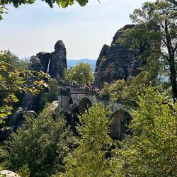 Nach einem wunderschönen Aufstieg sind wir an der Bastei angekommen.Okumaya devam et