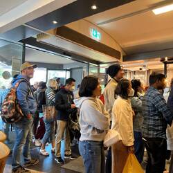 Glenda dug out our ziplock bag of euros and we went inside to order. As noon approached we saw a crowd gathering outside the store. A few people made their way through the door into the foyer where we sat with our pastries. The crowd got larger.