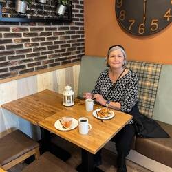 Glenda stepped outside to give me that message, and I was so impressed with the kindness of the older woman that I said, “Let’s go inside and get two pastries and two cups of coffee as we wait.”