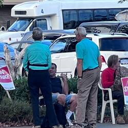 We finished our meal in less than an hour, in plenty of time to get back to our hotel. Some, but not all, of the employees of the Sheraton are on strike, so our hotel continues to operate, though with a reduced staff. We haven’t noticed any reduction in their usually excellent service. Nevertheless, as we returned to the hooch, we had to cross a picket line, though we were not bothered by any of the strikers as we did so. We came back to our hotel and prepared for tomorrow’s adventures.Leia mais
