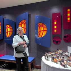As we wandered through town we stopped at the small Russian Orthodox Church, a vestige from the days when Kodiak was the capital of Russian Alyeska. The small cemetery we passed has as many Russian crosses as Roman. We made it a point to go by the new public library after our docent at the visitors’ center told us about the artwork there. A new state law requires municipalities to use one percent of the total cost of any public building for artwork.