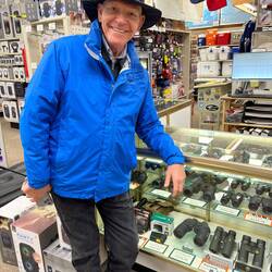 Glenda and I took one of the school buses into town enjoying the commentary of an extremely informative guide, a volunteer local resident. As we stepped off the bus, the first resident to greet us was a stately bald eagle sitting on top of a street light pole. We wandered through town, enjoying two museums and stopping by Alaska Ship Supply Co. to buy a pair of shoelaces. The World War II Museum in the refurbished control tower lies adjacent to the airport. Another bus ride took us to Holy Ascension Russian Orthodox Church. Lunch on the ship was followed by a hike up Ballyhoo Mountain to the site of an old U. S. Army observation post.