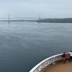Today was a sea day, so we had an easy day of rest, relaxation, and great food. We are in the St. Lawrence Seaway, a waterway that traces and skirts the St. Lawrence River from Toronto to the Atlantic Ocean. Its 15 locks allow ocean-going vessels to navigate the 250 foot drop between the Great Lakes and the mouth of the river. One of the locks through which we passed today, the Eisenhower Lock, brought back my childhood memories of President Eisenhower and Canadian Prime Minister Harold Diefenbaker meeting here to open the seaway officially in 1959 after 5 years of construction. Since then every port on the Great Lakes from Duluth, Minnesota eastward has had access to the world’s oceans. The St. Lawrence Seaway has been an enormous boon to the economy of the American Midwest.