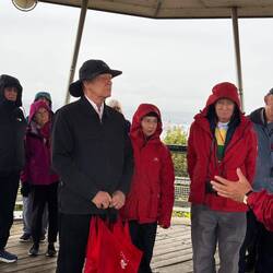 Still, despite copious rain, it was a wonderful day, exploring the beautiful French ambience of the Old City. It was founded in the 1530’s by the French explorer Samuel de Champlain. We also saw the Plains of Abraham, where British General Wolfe and French General Montcalm both died in a European conflagration we call “The French and Indian War.” We went next to a waterfall, Montmorency Falls, whose beauty, though not its size, matches Niagra’s cataract. In the rain and fog the waterfall looked magical.
