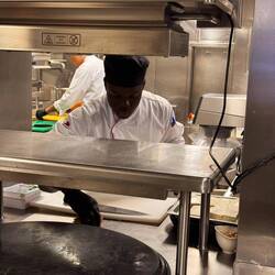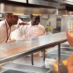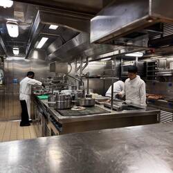 Yesterday afternoon, we took a tour of the galley with our executive chef. Anytime I’ve done a galley tour on a Viking ship. I’m impressed with the cleanliness and also the small area that they have for cooking. Each station in the back is no bigger than the smallest bedroom in our house. The cooking stations are divided into a salads area, a butcher shop, a meat preparation area, a side dish area, and a dessert area. There is one chef in charge of each station on the Viking Polaris. The bread is all baked in an open kitchen on the serving deck of the world café. The Viking executive chefs have made minimizing food waste into an art. Very little food is discarded at the end of each day. Their serving dishes on the hot buffet line are smaller than a 9 x 13 casserole dish so that they can be replenished. No food is allowed out more than four hours. I will say that all the food on board is exceptional. We are also impressed by the fact that every crew member seems genuinely happy to be working on a Viking ship. And at the end of a lovely sea day we were treated to a magnificent sunset.Read more