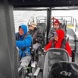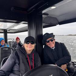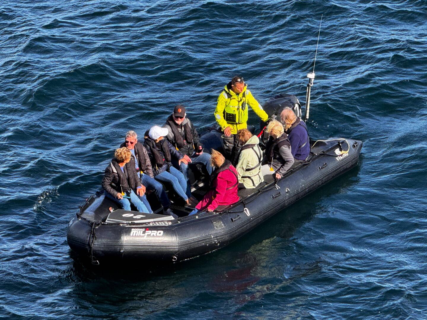 Several years ago, the United States Marine Corps at the New River facility in North Carolina developed a super powerful special operations boat. Each one can be dropped by parachute from an airplane, can travel up to 50 miles an hour and can hold 10 marines. The special operations boat can stop within two boat lengths. It is powered by two 450 hp Volvo Penta engines. The design for this was shared with the NATO allies of the United States, and now the boats for our European allies are made in Finland. Torstein Hagen, CEO of Viking Cruises, saw these boats and wanted them for his expedition ships. He added half a million dollars worth of extra equipment, such as shock absorbers on each seat. Now both of the expedition ships have two of these boats on board. Today we got to ride in one. Our pilot took it outside the bay into the Atlantic Ocean and opened ’er up. It was an absolute blast! I only wish Glenda’s father, an avid power boater, could have enjoyed the ride with us.