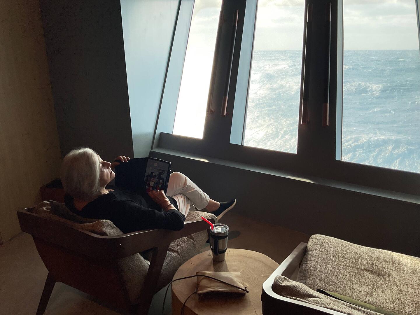 Today is a sea day, and it’s a good thing! We are off the coast of New Jersey going through what the Skipper called a “low pressure” area. Of course the Weather Channel, with its usual exaggeration, is making this storm sound like the hurricane of the century. The truth is somewhere in the middle. When I awoke this morning around 6 am, my Vessel Tracker showed winds at 55-60 knots, and the frothy whitecaps on the blue ocean were beautiful. The ship is rocking, but we have been on rougher seas several times before. But we’re safely ensconced down in an unknown lounge called “The Hide,” where we can see the waves breaking over the bow of the ship. The coffee is hot, the conversation is good and we’re having a great time.Read more