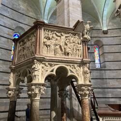 We had visited Pisa once before, but the sun was setting and our light was leaving. I took a few interesting photographs of the exterior of the cathedral, the baptistery, and the famous Campenille. Today we were actually able to see much more of the interior of the buildings. I was particularly pleased that since today is Maundy Thursday, a mass was being celebrated at the cathedral by the archbishop of Pisa. We saw Cathedral doing what a cathedral is supposed to do—housing a liturgical gathering. Unfortunately because the service was in progress, we were not allowed to take photographs inside. So we went over to the baptistery, made our photographs, and then returned to the cathedral to enjoy the rest of the worship service.Læs mere