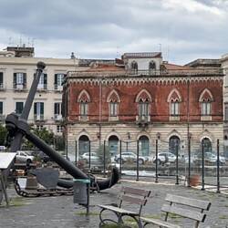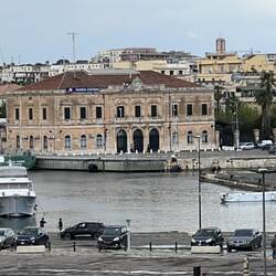We took time for a thorough investigation of the local archaeological museum. There was a long line of my shipmates waiting to purchase tickets, but after a few minutes the ticket-taker just raised the barrier and waved us in free of charge. Although the exhibits’ descriptions are in Italian, I was able to get the gist of most of them. I learned that there is evidence of human habitation here going back to around 6000 years BC, though documented settlement began with the Phoenicians. Crotone was part of Magna Graecia and participated fully in Greece’s Olypiads and in her wars. Among the photos I took were pictures of an utterly beautiful Greek urn, and an incomparable diadem found at the nearby excavation of the Roman Temple of Hera Lacinia. I was surprised that the little museum here really is quite good.