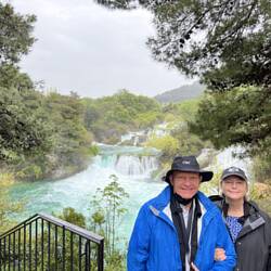 A 30 minute bus ride in the rain took us to Krka National Park. Here are the most magnificent waterfalls I’ve ever seen. There must be a hundred of them ranging from small rapids to huge cataracts dumping millions of gallons per second. In the old days there were 17 flour mills here. Some of them have been preserved and they provide a wonderful demonstration of how water power was used. It was particularly interesting to learn that Nichola Tesla grew up here. We saw the first power plant he designed, along with the original turbine used to generate electricity. While this town was the first town in the world to use electrical power, this hydroelectric plant was actually the second one ever built. After making the plans for this facility, Tesla went to the United States to build the hydroelectric station at Niagara Falls. While that plant was finished before this one, making it the first one in the world, this hydroelectric station began to produce electricity before the one at Niagara Falls. Buffalo, New York had to wait another six months for power lines to link the hydroelectric station to the city. Here the lines were strung before the plant was built, so electricity started flowing immediately upon the plant’s completion.