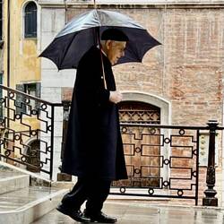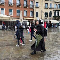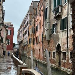 On the bus were told that we would not go to Venice. We would go instead to Chioggia, a very small port south of Venice, to board a boat for a ninety-minute “scenic” boat ride into the city. We got off the bus in a deluge with umbrella-breaking winds. With the rain and fogged windows we saw little beyond the gunwales of our boat. At least we were able to ride inside the boat, not up on the deck.