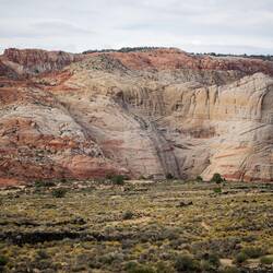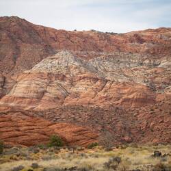 After lunch we had to work around the detour to get to Snow Canyon State Park. Its ivory cliffs were amazing. We took a number of short hikes, took many photos, and watched some rock climbers scale aMeer informatie