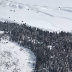 down the hill and onto the trail. Folks, what we had to go through was a tunnel of snow that had 4 feet sides of sugar soft snow. The dogs took off and I leaned and did all the stuff she had told me to do and within 10 feet I flipped our sled. Chuck and his camera were dumped into the snow bank and I landed beside him. We got ourselves out and righted the sled and I announced that I was riding and Chuck was going to get us down the hill/tunnel. So, we changed places and were once again ready to go when I realized that the bag containing our lunches in the front of our sled had become unstrapped in the snow chaos of flipping and rolling. Chuck goes to the front of the sled to secure it and our guide did not see him and yells to the dogs to go. Our sled had no musher and once again it flipped and dumped me into the snow bank while Chuck is trying to catch our run away sled. The second sled came crashing into me but I was not hurt because I was buried in snow. I crawled out once again and we got ourselves situated and Chuck got us down the hill and off we went.