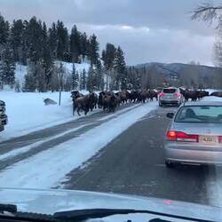 The animals who have lived in the Grand Teton Mountains since the dawn of time invited us into their home on this snowy morning. Well—sort of. The big horn sheep, who long ago learned that humans are no threat, allowed us to walk up close as the snow covered their woolly backs. A family of sharp-tailed grouse even posed for me. But the bison, moose and elk kept their distance. Still, we were able to capture some images worth keeping. Photos of the trumpeter swans and bald eagles were harder to get, but, nevertheless, we have the memories of their beauty. Dave, our guide, knew more facts about more subjects than most professors I have known. Moving to Wyoming from Alaska 28 years ago he has seen many changes here. He directed us to “The Local,” a restaurant that uses locally produced meat and produce as much as possible. Yet he was quick to tell us that Wyoming does very little farming. This state has a much harsher winter than even neighboring Idaho. Though it is one of the largest states, geographically speaking, Wyoming has the smallest population of any state. Even little Vermont has more people. Dave advised us to stop by the Silver Dollar Bar and Grill. Embedded in the top of the bar are over a thousand silver dollars. Many years ago the saloon burned down. Firefighters immediately chopped out the bar with axes and took it to storage and then started fighting the blaze. Now the old bar with its silver dollars intact is still in service. We had a wonderful bison burger at “The Local” made from the largest land mammal in North America. An adult bison weighs over a ton and stands about 15 feet long. A quick trip to the mall during which Glenda replaced her boots with warmer ones ended our afternoon. Now we have retreated to our warm cabin and are watching the end of this morning’s snowstorm.Read more