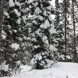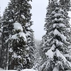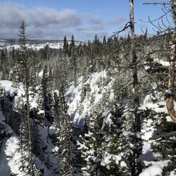 NC snow and Wyoming snow are very different. In most of the places we have visited, the snow is fine, powdery, and dry. They call it sugar snow. It is not snowman or snowball snow because it will not hold together. Currently the snow in the national parks and forests here is at least 4 feet deep. When you step on virgin snow your foot will sink about a foot but if you step in a place where someone has stepped before and packed down the snow, you may be fine or you may hit what they call breakthrough snow and then your foot will go down 3 feet or more. When one leg is buried in 3 feet of snow and the other is not, life can get interesting . If you put your hands down to try to push yourself up, your hands sink down and life gets even more interesting.