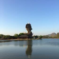 Ansonsten hab ich den Sonnenuntergang an einer Pagode verbracht, wo rundherum eine Art Burggraben war. Die Pagode selbst steht auf einem kleinen Felsen.