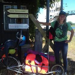 Bis nach Manschnow wollen wir heute noch kommen. Und hoffen sehr, dass das Oderhochwasser nach Jochis Auskunft nur knöcheltief- zum Fahrrad durchschieben- ist. Los geht's!