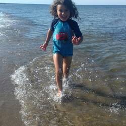 Aber das erste Mal mit richtigen Wellen! Karli platscht, buddelt, springt und spritzt mich nass.