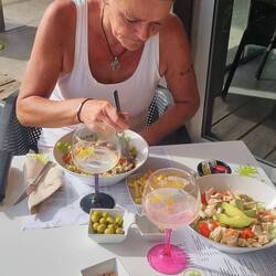 Onder een stralend zonnetje wakker geworden, ontbijt met lekker vers gebakken brood en vers gekookt eitje, een groot glas vers geperst mandarinesap, was weer zalig!!!!