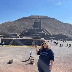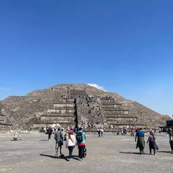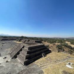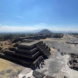 Danach ging es direkt zu den Pyramiden, wo wir 3 Std. Zeit hatten herumzulaufen und sich alles anzuschauen. Es durfte sogar auf die Mondpyramide gestiegen werden. Es sah zwar nicht so steil aus, aber das war es. Daher verstehe ich nicht, dass sich manche Personen hoch und runter gequält haben, die bereits eine Gehilfe benötigen. Von oben hatte man einen tollen Blick über das gesamte Gelände. Zu empfehlen ist allerdings, bereits in der Früh zu den Pyramiden zu fahren, da es keinen Schatten gibt und die Sonne sehr herunterballert.