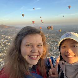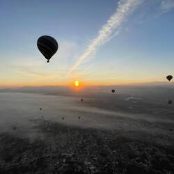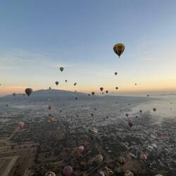 Doch nicht nur so zu den Pyramiden, sondern zuerst werden sie von oben angesehen und zwar mit dem Heißluftballon. Pünktlich zum Sonnenaufgang waren wir in der Luft. Es war zwar sehr sehr kalt, aber die Aussicht hat das wieder gut gemacht. Durch den Sonnenaufgang und dem Nebel hat sich die Szenerie alle paar Minuten geändert, deshalb wurden auch viele viele Fotos gemacht. :D