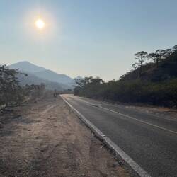 Von Oaxaca nach Puerto Escondido sind es um die 3 Std. Fahrt - ohne Mautstraße. Leider endete die Straße an einem Fluss/Bach, den man mit Allrad und einem Transporter bestimmt überqueren konnte. Mir blieb leider nichts anderes übrig und auf die Mautstraße zu fahren...