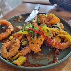 Lunch out today. Great place, always busy, overlooking the river going into the ocean. Fabulous atmosphere.
