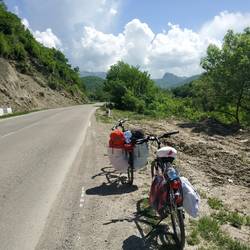 Die georgischen Autofahrer sind ?!_&#+#+# (denkt euch alle schlimmen Wörter). Die Hände kleben am Lenker wie Slimeys aus dem Yps an der Küchendecke und 600hm sind scheiße viel. Das war Tag eins.Læs mere