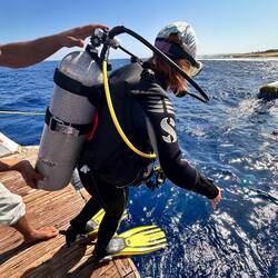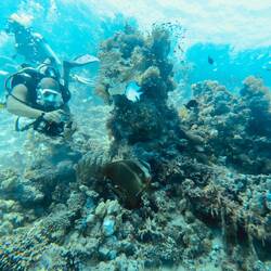 Nach 2 tagen pause mit Ko**** und sch*** gab es 2 Tauchgänge, einer davon mit kompass auf die nord seite des riffes. Mit trüber Sicht nicht wirklich entspannt +- 15 meter.