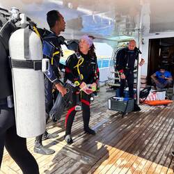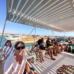 Nach dem gestrigen ohrpausieren und dem einten TG der Mädels am Hausriff ging es ausgeruht zur letzten Bootstour heute. Kisten verladen und schon gehtes wieder nach port galib. 15 min südlich der 1Läs mer