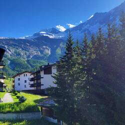217 Km von Birsfelden nach Saas-Fee. Stop and go bündelidaag Verkehr. Eingecheckt im Hotel Aida und Bier und Wein verstaut 😎 Hammer Aussicht vom Zimmer. Nachtessen im Restaurant Steinbock.Read more