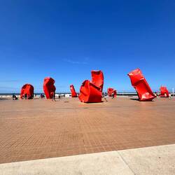 Sigthseeing in Oostende mit dem Velo. Gratis Fähre vom fort Napoleon in das Zentrum. Hafen und Fussgänger zone besichtigt. Robbie Williams und steeven Seagul gesehen.