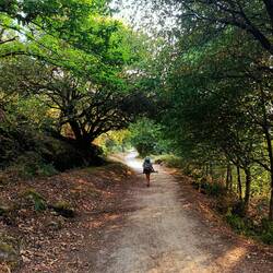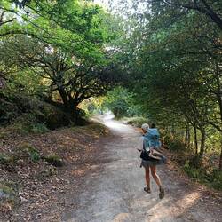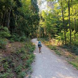 Ráno jsme vycházeli ještě za tmy krásnou lesní cestičkou. Proti nám chodila spousta poutníků mířící do Santiaga.