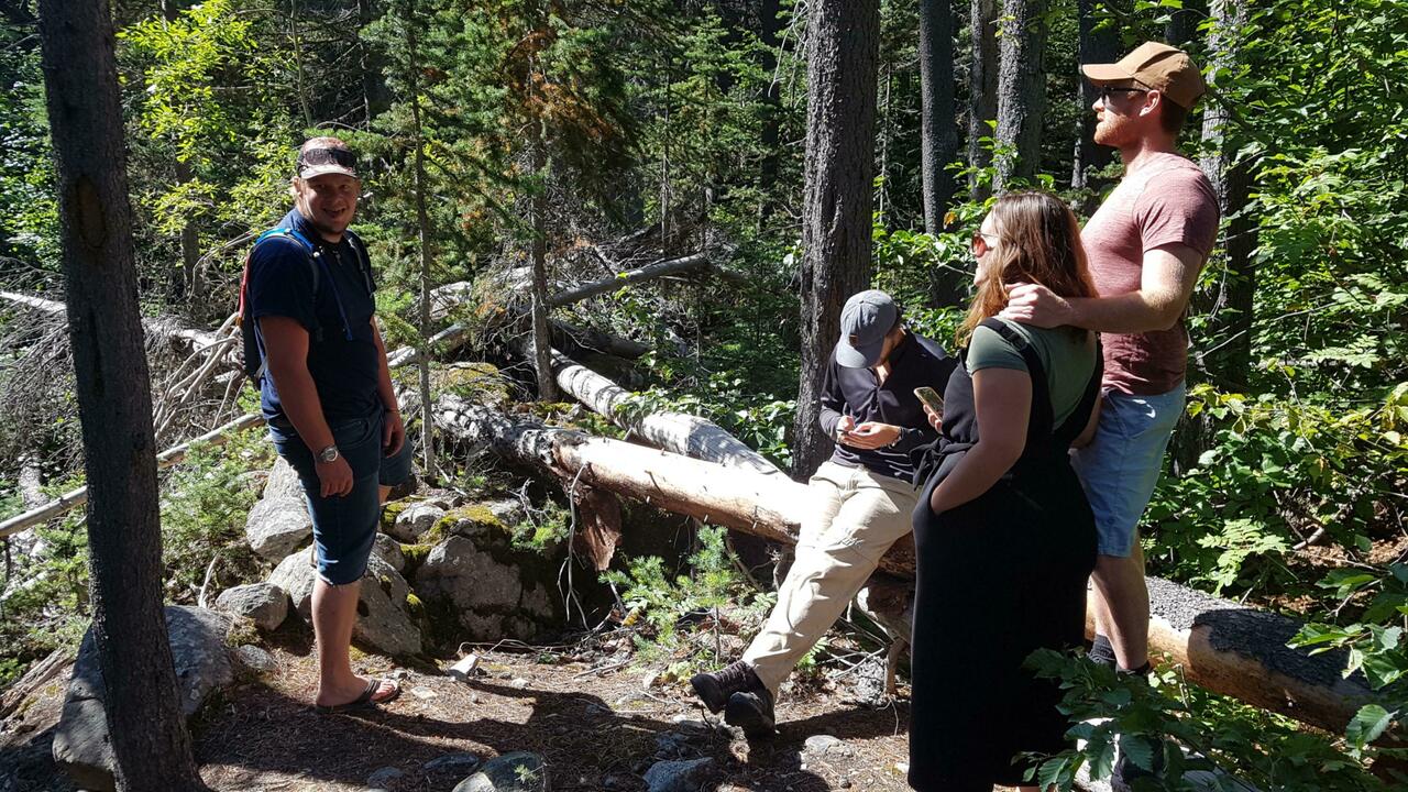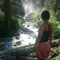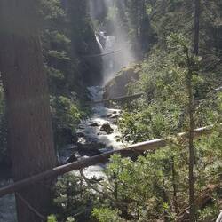 Well some miners found it before us I guess. They build the miners cabin here and bears use it as a scratch post... nature at its finest. Like most creeks, the waterfall is feed by glacial lakes.