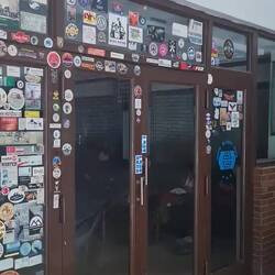 if they don't allow you to stay at the police station, the bloom star hotel is the end point for everyone that makes the crossing, as you can clearly tell by looking at the sticker-filled glass front. the problem is, since the police force you to stay there, the hotel can pump up the prices at will. they charged us a comical amount, and we flat out refused to pay and told them we'd just sleep right in front of the reception. i was already half asleep in the lobby chair, when elias finally managed to haggle them down to an expensive, but somewhat acceptable price and we finally got a couple hours of sleep in.