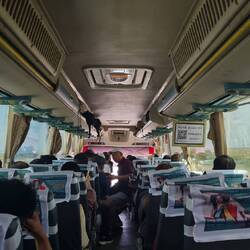 i saw a good couple of buses at the terminal on my last morning in kazakhstan, but mine wasn't among them. after a couple of minutes of "oh it'll turn up in a sec"; a guy came up to check my tickets. turns out my bus had somehow already left long before it should've. i couldn't believe it.