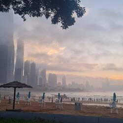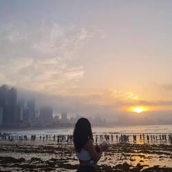 the hostel was situated right next to the coast promenade, from where you could look up at the brightly lit up skyline along the shore. i didn't expect it at all, so you can imagine my face when i turned the corner and saw it for the first time. one metro ride away was also a beach, which i thoroughly enjoyed. the water is like 25 degrees, you could literally stay in there the whole day (or the whole night, in my example).