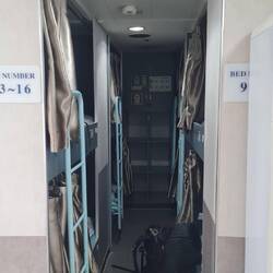 when we came back, the entire waiting room was empty all of a sudden. they had started boarding too early, but we quickly caught up with the rest of the passengers, including another german guy and a norwegian bikepacker. after customs, we formed a little clique and got settled in the 48-man sleeping hall, which was actually a lot better than it sounds.