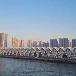 i knew that getting a ferry at a chinese port wouldn't be a piece of cake, so i left a good 6 hours of buffer before the departure, you never know. stocked up on cup noodles and drinks, took a metro, and then started walking towards the gps location i had found in someone's blog post. the heat was insane, i was sweating buckets after just five minutes, but soon arrived at the location where i found: a construction fence. and with that, i already thought that was going to be it.