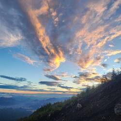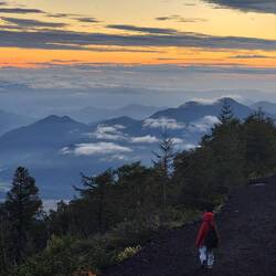 after a couple of hours of sleep, i woke up before sunset when another group of japanese hikers came by, shining their head torches at me just as stunned to see me in the hut as i was to see them at that time of day. in just a couple of minutes, i was ready to go. i was taking more pictures than steps during the next hour, but still made some good progress. so good in fact, that i decided that i could probably summit the same day and make it back to fifth in time for the last bus down from the observation deck, essentially saving a full day. and that's precisely what i did.