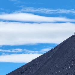 relieved that the weather hadn't flipped on me, i reached the summit around noon and enjoyed lunch to one of the best views of my trip. after a victory lap around the crater, it was time head back down. i was very thankful i brought my gaiters, which made sliding down the scree a lot easier, and in less than two hours, i was back at fifth.