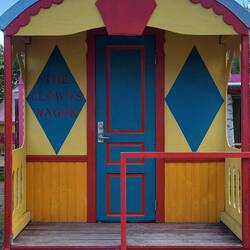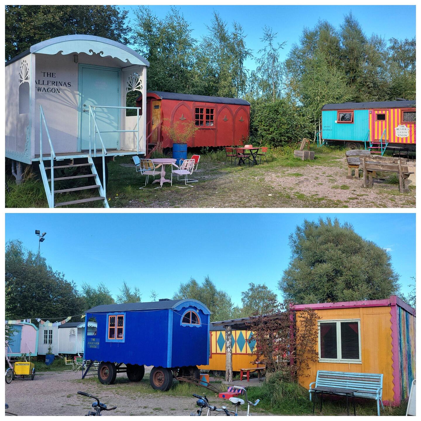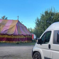 Sehr origineller Stellplatz am Grand Circus Hotel, wobei die Hotelzimmer Zirkuswagen sind.