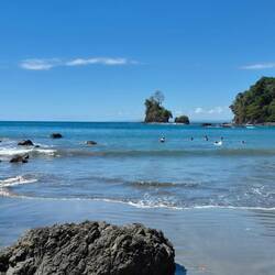 Wir fahren weiter die Pazifikküste entlang und starten kurz vor Mittag in Quepos eine Küstenwanderung. Es ist 35 Grad heiß, im dichten Küstenwald steht die Luft und es ist (trotz des blauen Himmels) richtig schwül. Der Weg geht immer wieder steil rauf und runter und man wandert zu einer kleinen und wenig besuchten Badebucht. Bei diesen klimatischen Bedingungen kommen wir dann völlig verschwitzt wieder zum Auto zurück und fahren noch 50 km weiter in den kleinen Küstenort Domincal, den wir ab morgen erkunden werden.Read more