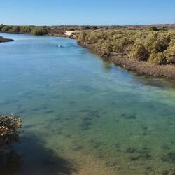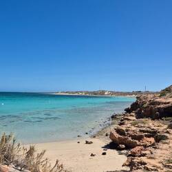 Wir erreichen heute bei Exmouth den nördlichsten Punkt unserer Tour. Auf einer schmalen Halbinsel gibt es auf der Westseite den ,Cape Range Nationalpark' mit Sandstränden, Schnorchelplätzen amLes mer
