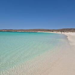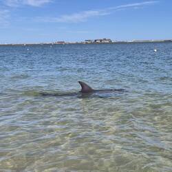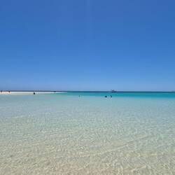 Es geht heute Morgen schon früh in das Naturschutzgebiet ,Monkey Mia'. Ab ca. 8 Uhr (und bis zu dreimal am Vormittag) kommen dort einzelne oder mehrere Delfine nah ans Ufer heran und werden vonLes mer