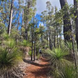 Nur 50 km von der Küste in östliche Richtung liegt ein großes Waldgebiet aus Jarrahbäumen (einer besonderen Eukalyptusart) um das kleine Dorf Dwellingup herum. Wir sind auf einem CampingplatzLes mer