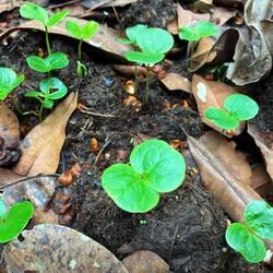 Der Weg ist übersäht mit Elefantendung. Aus vielen Häufchen recken sich aus Sporen erwachsene Pilze und aus Samen entsprossene Pflänzchen empor. Der Elefant ist der großartigste Gärtner im Dschungel.