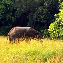 Das hätte eigentlich schon gereicht. Und dann stehen wir mit dem Jeep vor einem Elefantenbullen. Unbeschreiblich schön. Lange läßt er sich nicht beobachten und zieht sich ins Dickicht des Waldes zurück. Sei‘s drum. Ein tolles Erlebnis.Read more