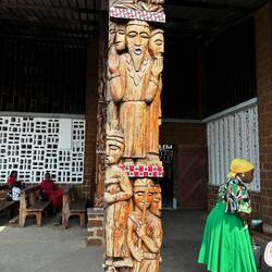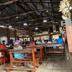 Die Hauptstadt hat ein paar nette Kirchen zu bieten. Wir besuchen zwei davon. Es ist Sonntag. In der Hauptkirche St. Michael ist es proppenvoll. Die Menschen sitzen zum Teil auf Bänken außerhalb. Wenngleich bei einer Kirche ohne erkennbare Wände an zwei Seiten durchaus das Wort „außerhalb“ relativ ist. Die Gläubigen sind prächtig gekleidet. Freude und Würde erfüllt den Raum.